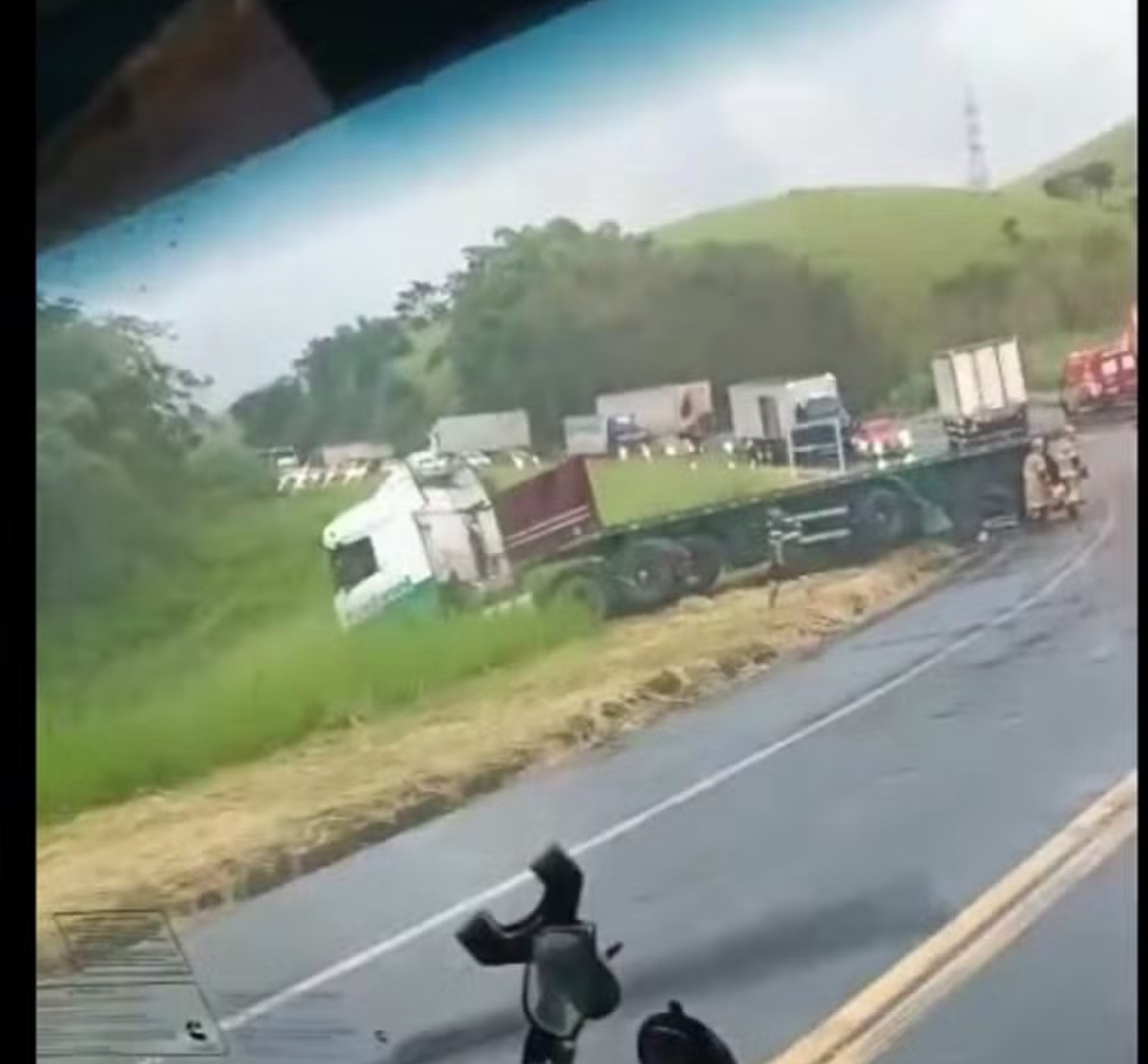 Um acidente entre um caminhão e uma carreta matou um homem e deixou outro ferido nesta