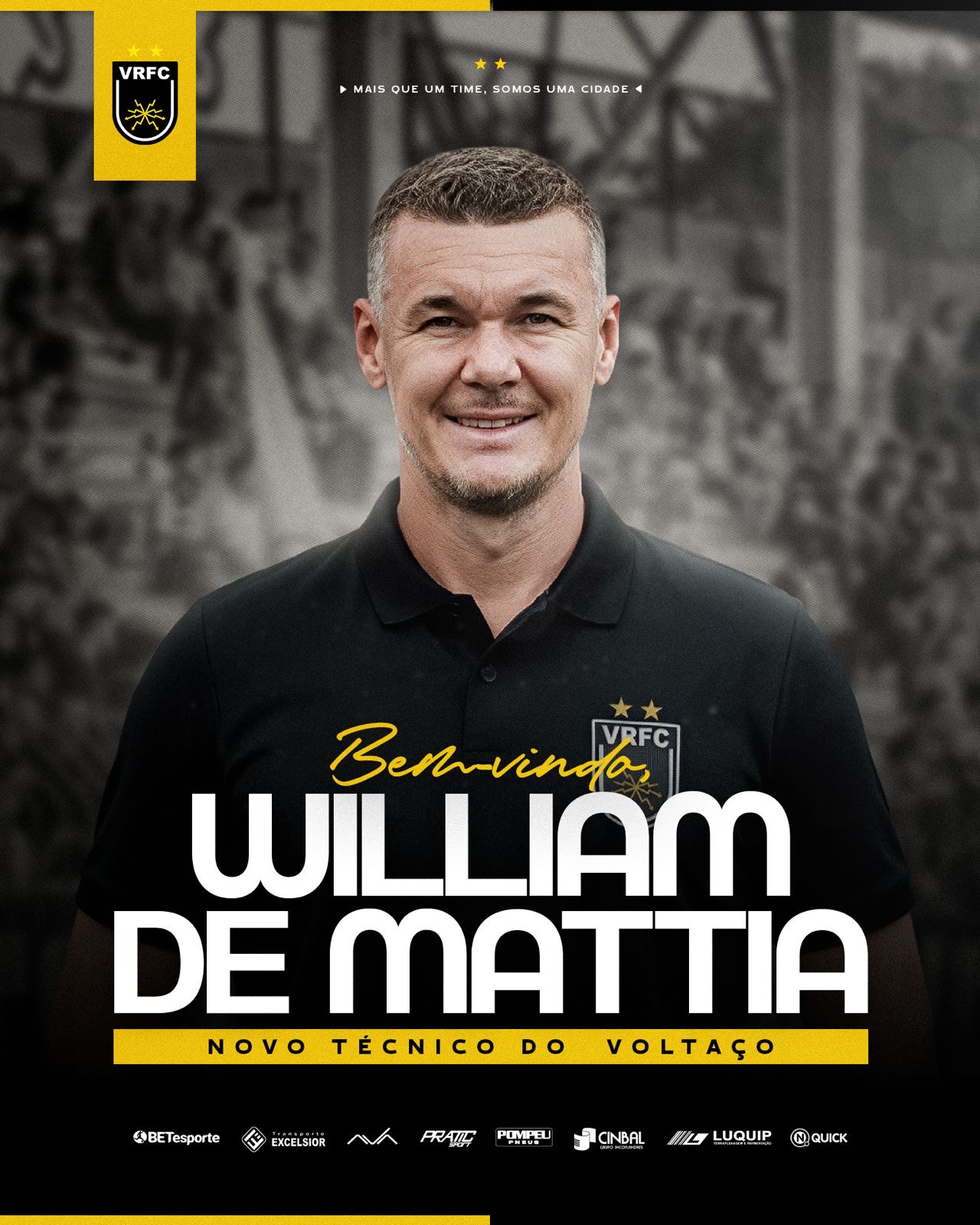 O Volta Redonda FC informa oficialmente que William De Mattia é o novo técnico da equipe