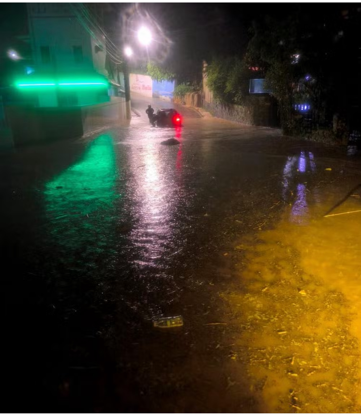 Uma chuva forte causou alagamentos, queda de postes, árvores e deslizamentos na noite de domingo (8)