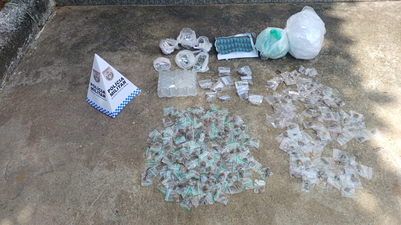 Policiais do 37º Batalhão de Polícia Militar apreenderam uma grande quantidade de drogas na manhã de