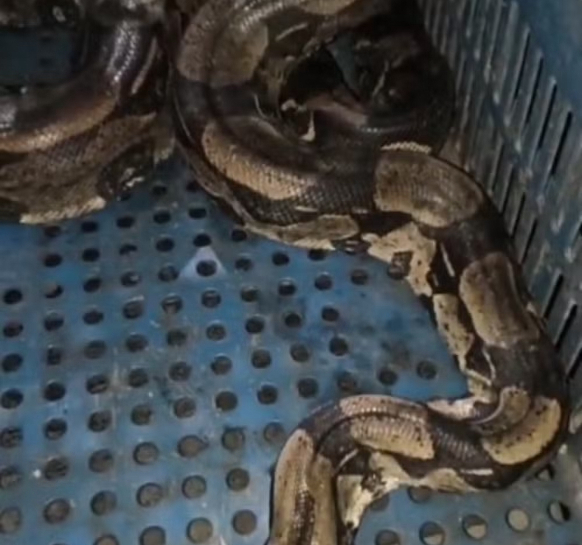 Uma jiboia (Boa constrictor) foi encontrada dentro da carroceria de um caminhão em um posto de