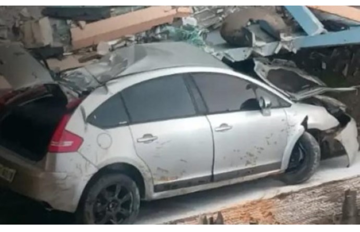 Um carro caiu do Elevado Castelo Branco, em Volta Redonda, na manhã desta quarta-feira (14), e