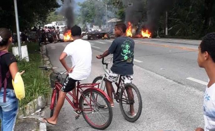 A Rodovia Rio-Santos foi fechada na tarde desta sexta-feira, em protesto contra a demora para a
