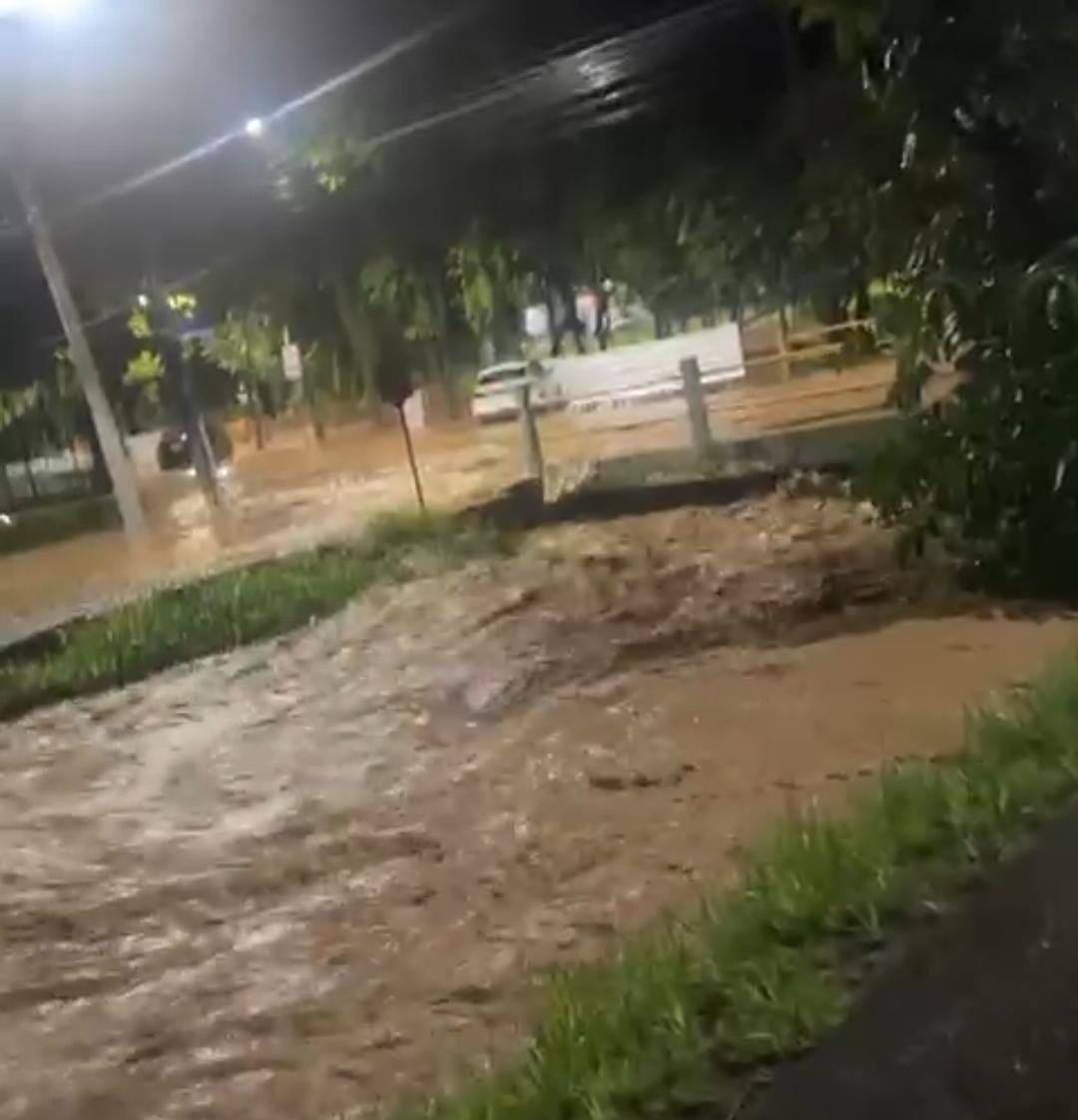 A chuva da noite de quarta-feira (9) provocou o transbordamento do Córrego Brandão, em Volta Redonda.
