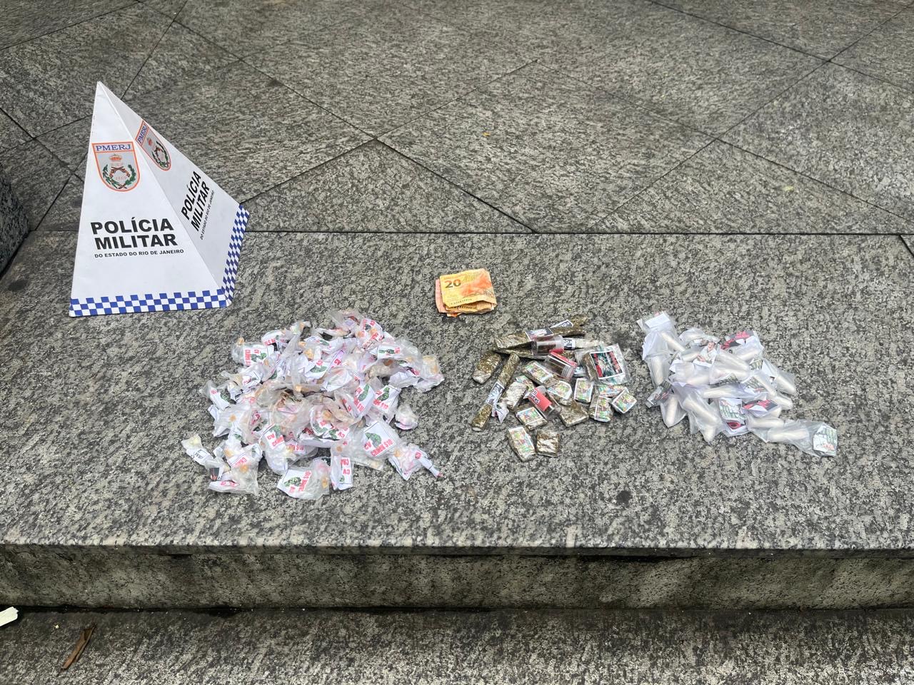 Um homem de 22 anos foi preso em flagrante por tráfico ilícito de drogas na tarde