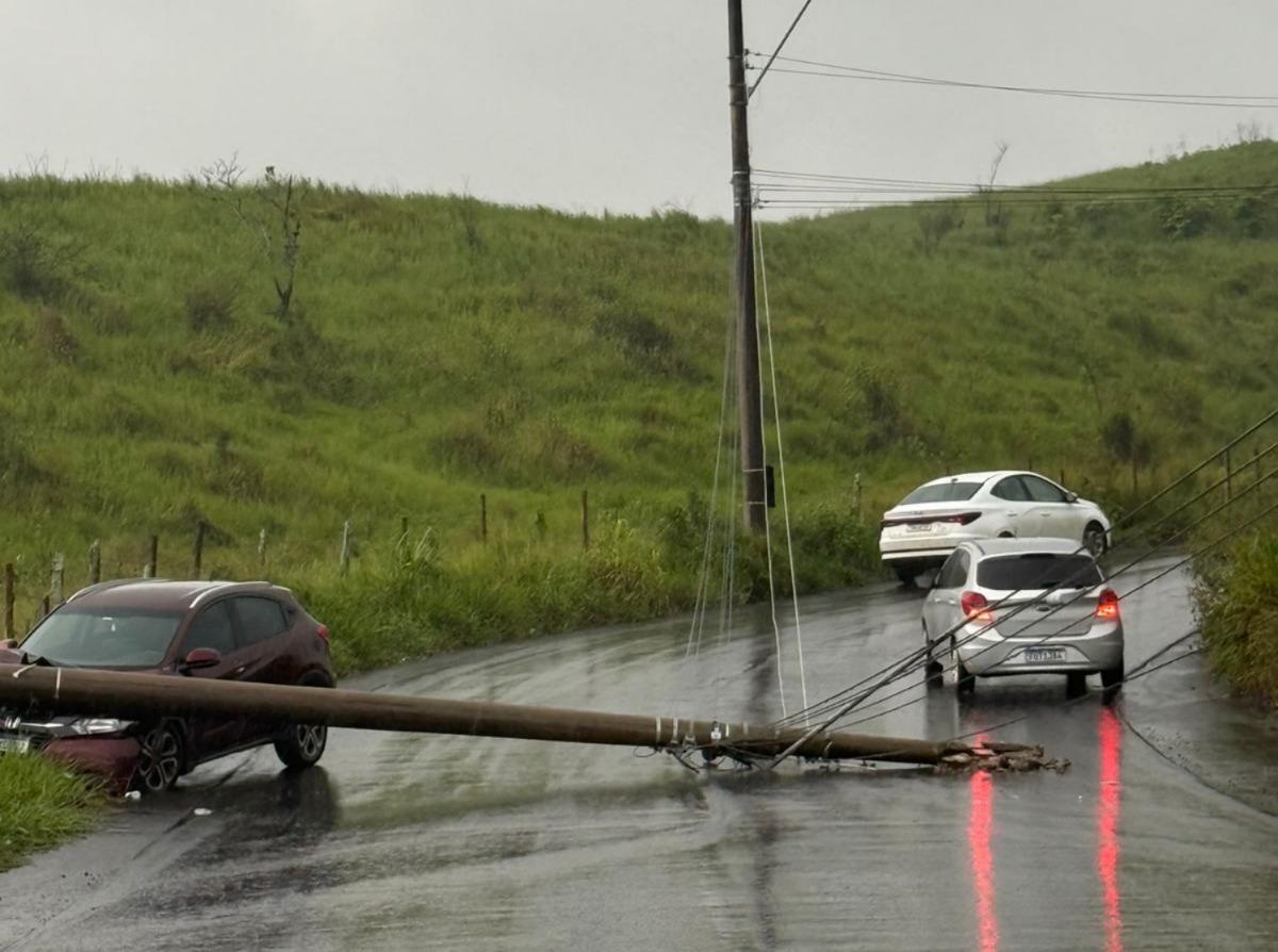 Um poste caiu em cima de um carro na taxa desse sábado (24) em Volta Redonda.