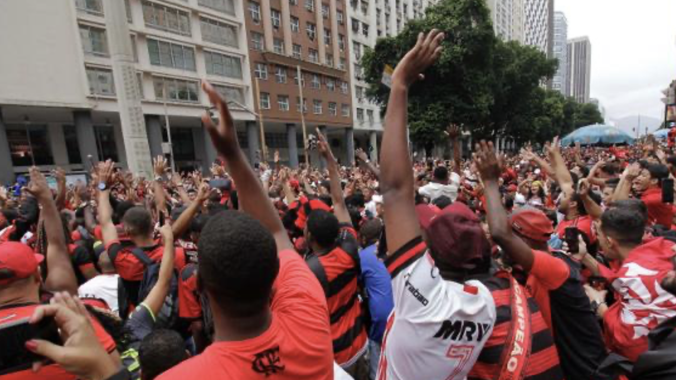 Por Tribuna A torcida do Flamengo começa a chegar em peso à Candelária, no Centro do
