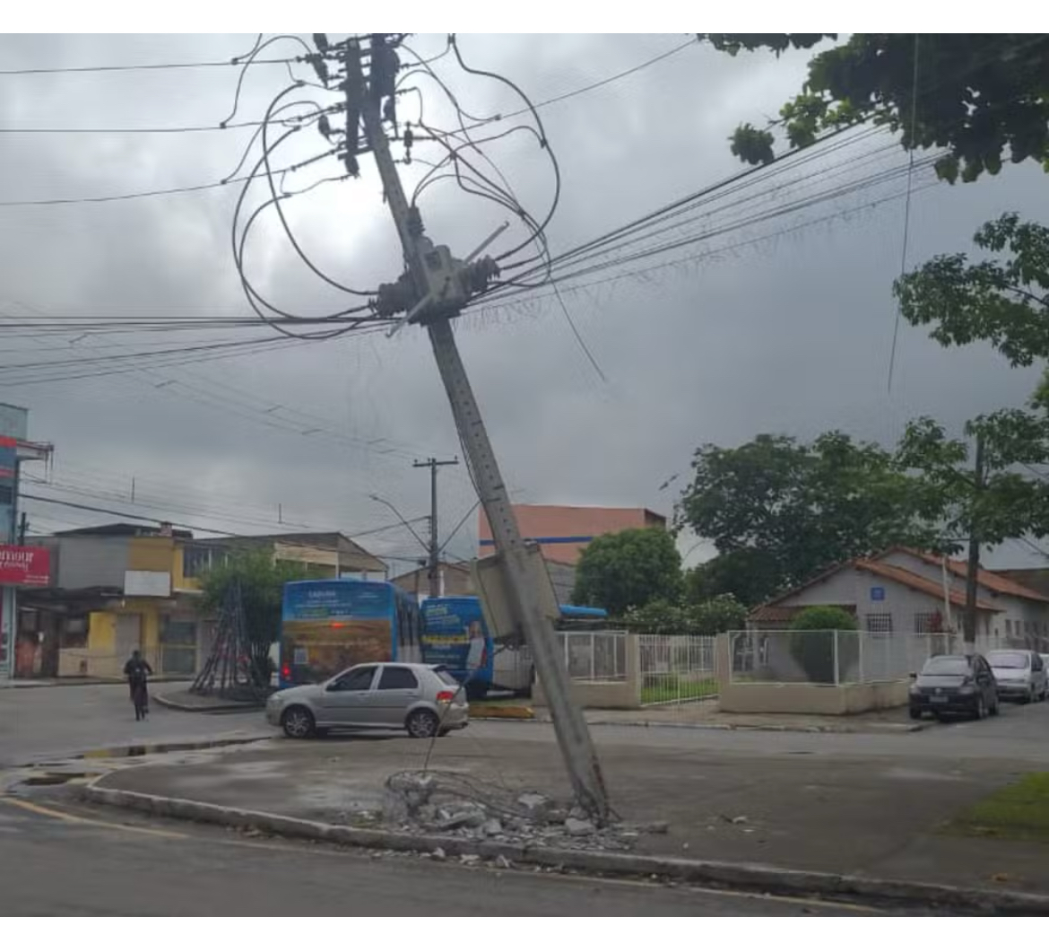 Um caminhão bateu contra um poste da rede de energia elétrica na manhã deste sábado (20)