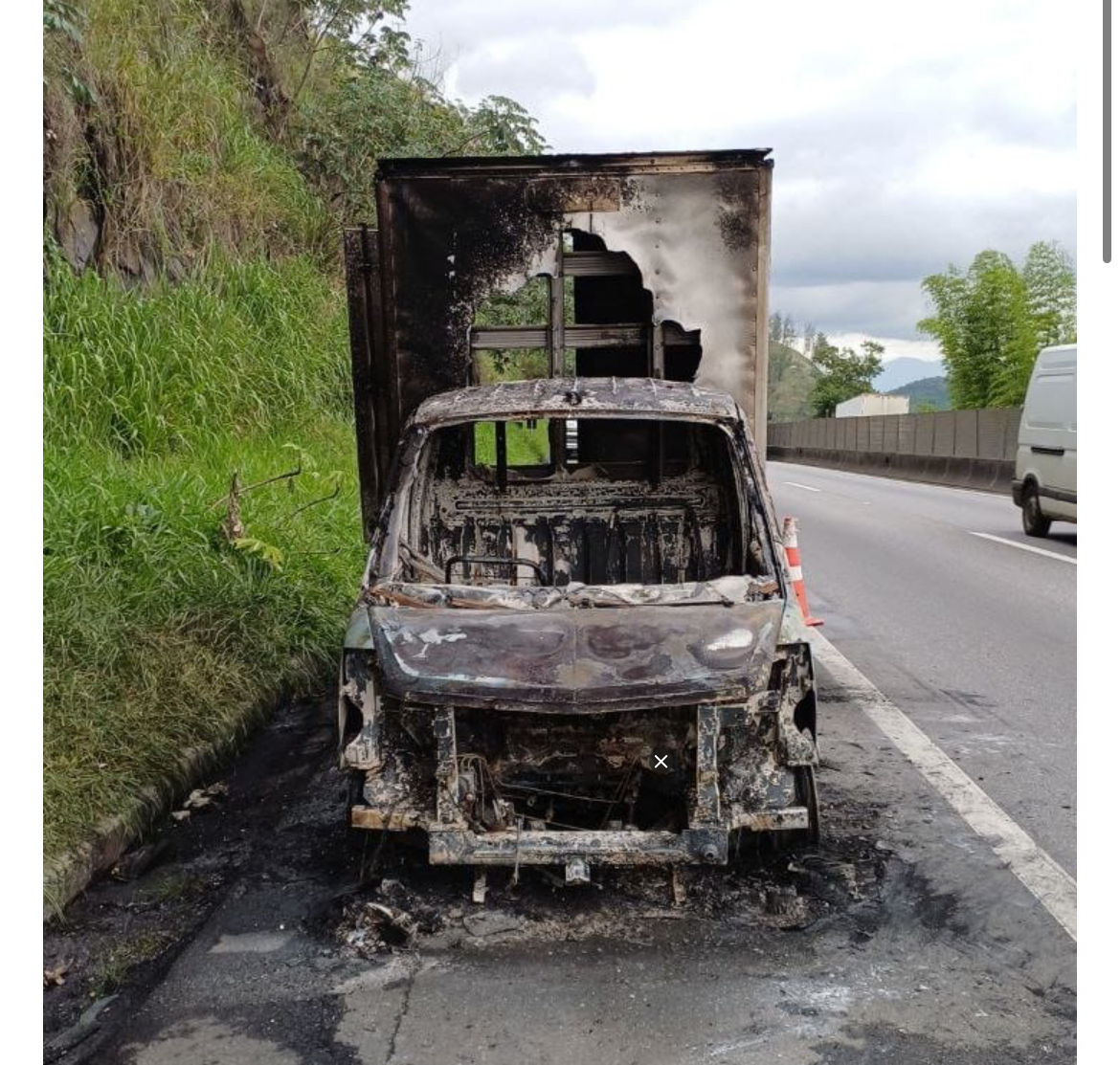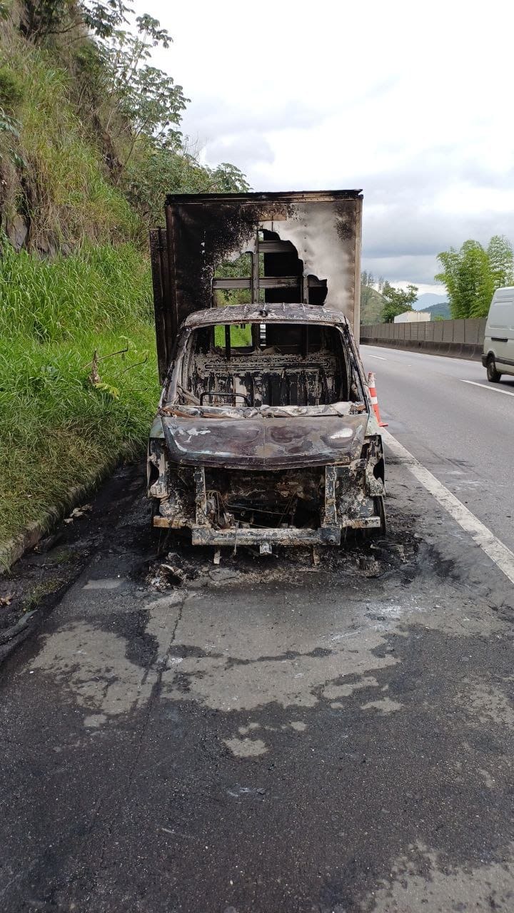 Uma caminhonete foi completamente destruída por um incêndio na tarde desta terça-feira (17), na Rodovia Presidente