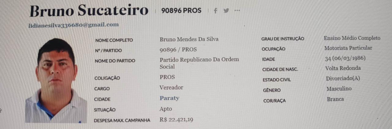 Por Tribuna Bruno Mendes da Silva, de 35 anos, que foi candidato a vereador em Paraty,