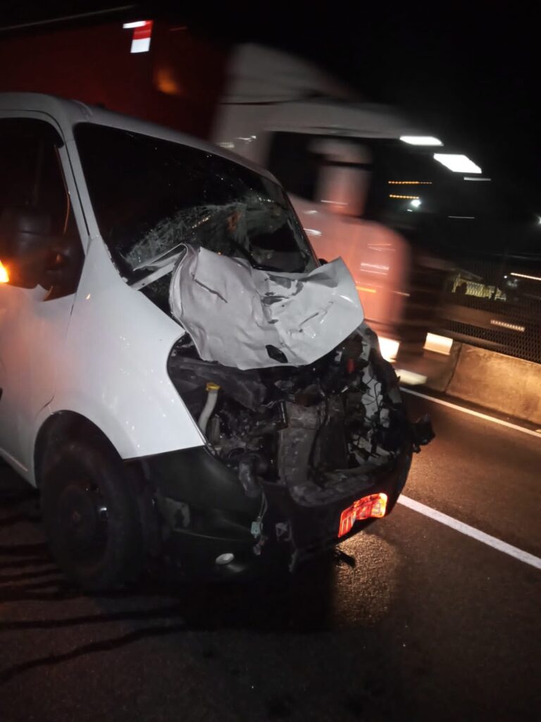 O animal, que estava na pista, foi acertado pelo veículo. Segundo informações preliminares, o motorista do veículo não sofreu nenhum ferimento grave, mas parte da van ficou destruída.