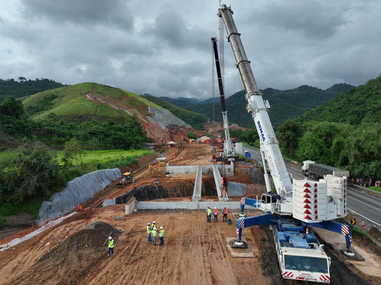 A CCR RioSP faz nesta sexta-feira (10) novos lançamentos das vigas de concreto dos viadutos que compõem o projeto de construção de mais uma pista na Serra das Araras. Na quinta (9) foram lançadas as duas primeiras vigas. A atividade aconteceu durante a interdição para desmonte de rochas, das 14h às 16h.