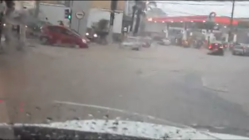 Há também alagamento avenidas Sávio Gama e Antônio de Almeida, no bairro Retiro. Motoristas trafegam pela BR-393, na altura da Rodoviária de Volta Redonda, também encontram dificuldades.