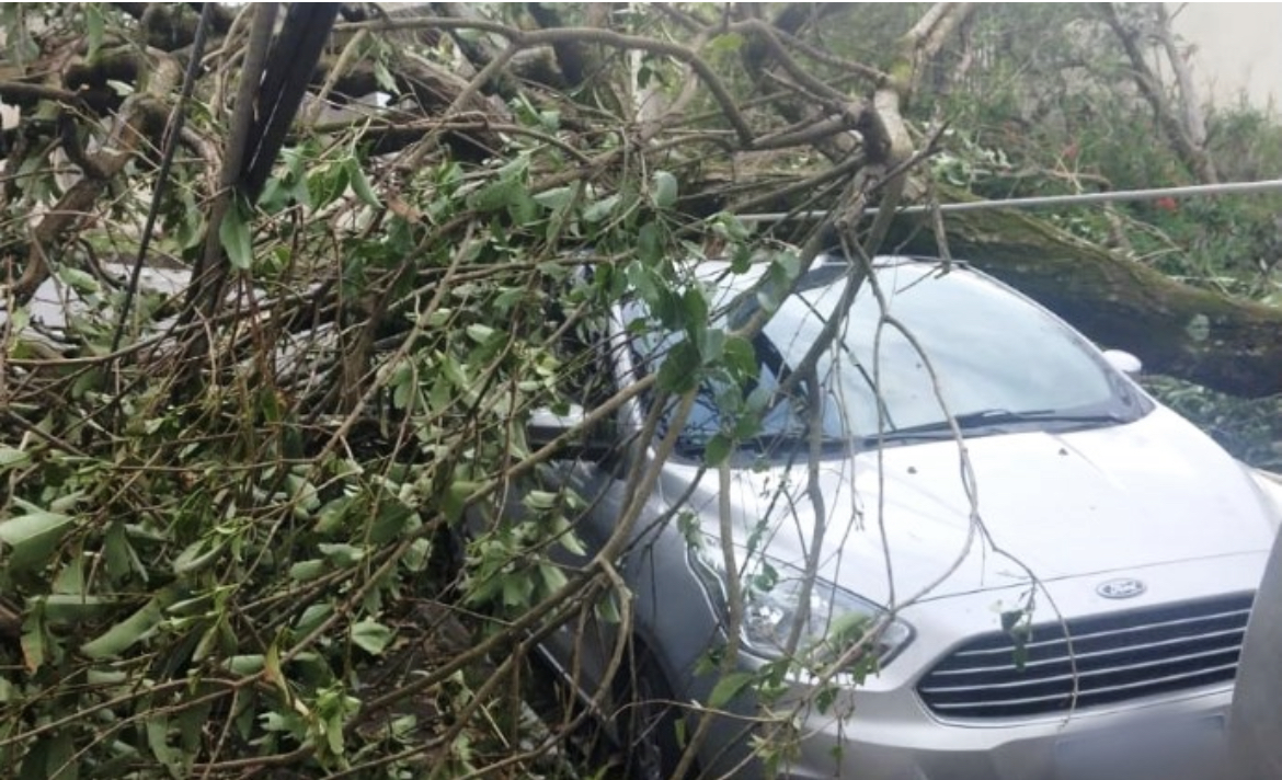O caso mais grave foi na rua Jeferson Patriota, no bairro Jardim Suíça. No local, uma árvore caiu num poste de luz, atingindo um carro estacionado.