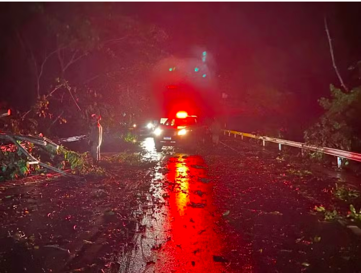 A Rio-Santos ficou fechada na altura de Paraty-Mirim, no km 418, até durante a madrugada, quando o serviço de corte e limpeza foi finalizado. O trabalho foi concluído às 1h50. Na Várzea do Corumbê, houve o corte de uma árvore na Rua da Fama. O serviço foi finalizado às 2h40.