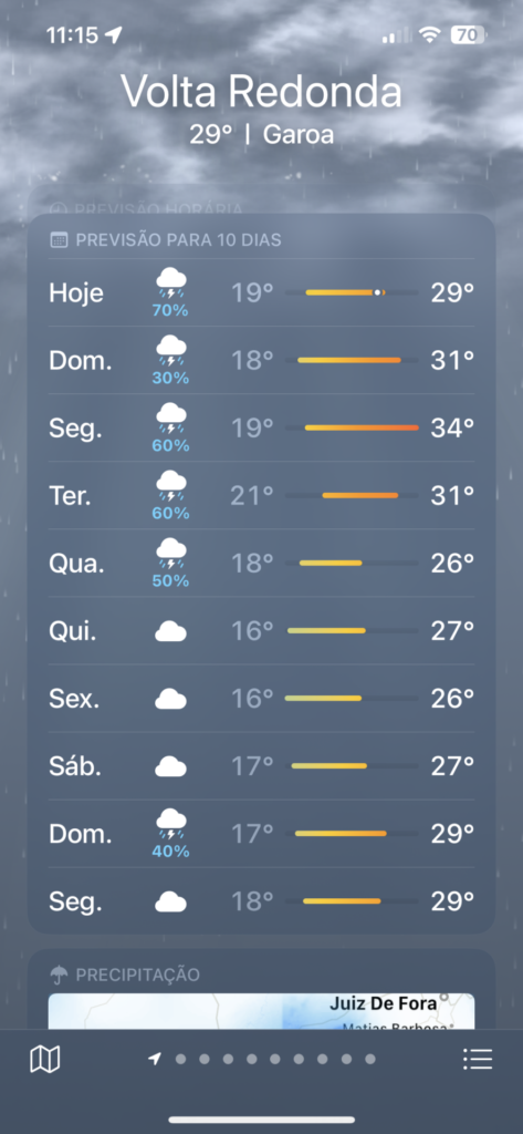 Após o temporal da noite desta sexta-feira (11), a chuva vai permanece neste final de semana e no feriadão em Barra Mansa e Volta Redonda. As informações são da Instituto Nacional Meteorologista.