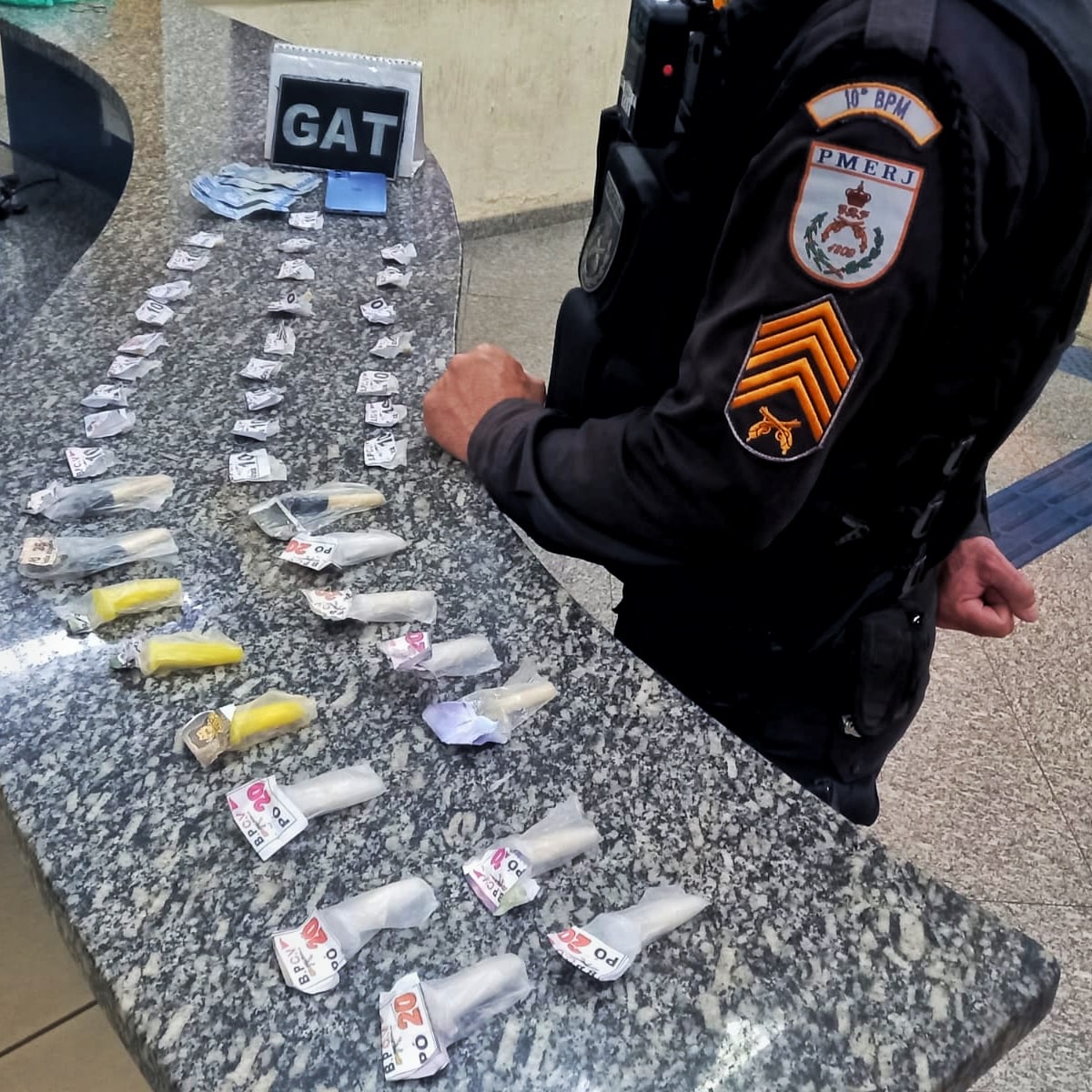 Na sacola, porém, foram encontrados 22 pinos de crack e 15 pinos de cocaína. O suspeito e material foram levados para a delegacia de Barra do Piraí (88º DP), onde o caso foi registra e o suspeito foi autuado pela 11º vez pelo mesmo crime.