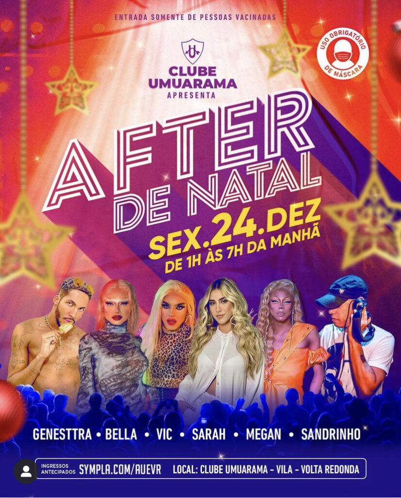 Festa “After Natal”, uma parceria do Aue Bar/Umuarama – A festa será na Praça Brasil, sem número, na Vila Santa Cecília, em Volta Redonda. Ingresso antecipado: R$ 40. Públicos LGBTQI+ . Mas os heteros são muito bem vindos.