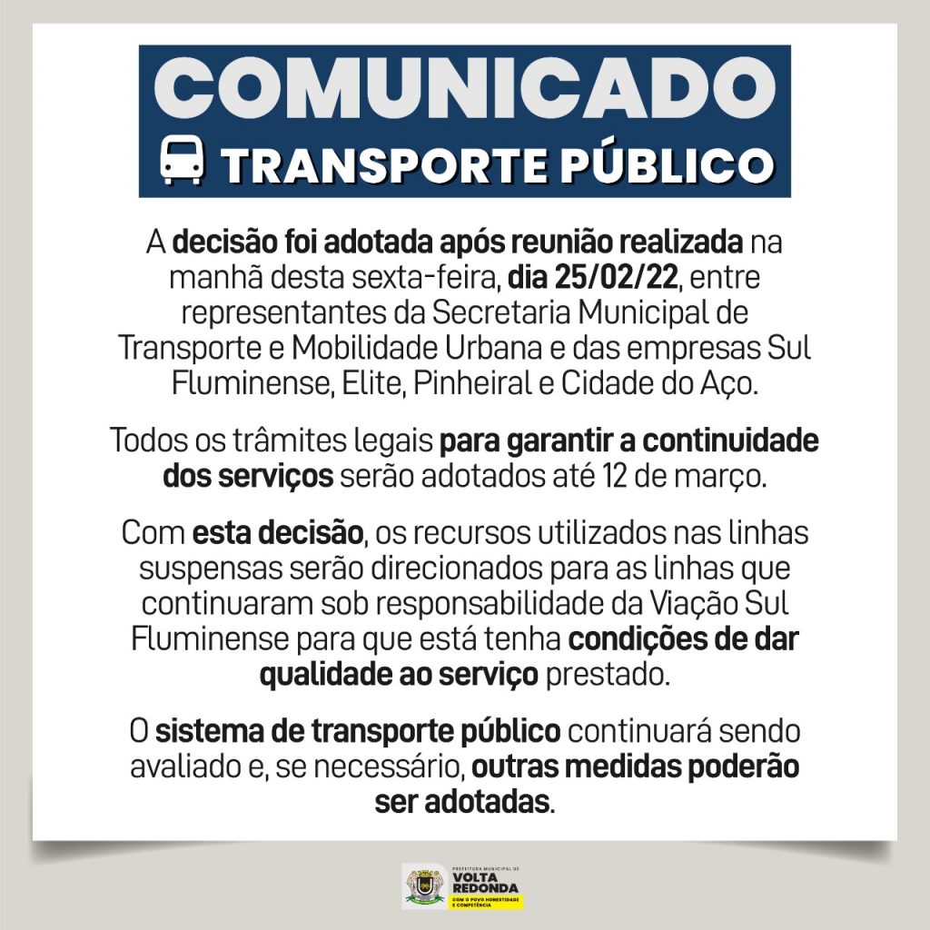 A decisão foi tomada após uma reunião na manhã desta sexta-feira (25) entre todas empresas de ônibus da cidade, inclusive a Sul Fluminense, com a Secretaria Municipal de Transportes e Mobilidade Urbana.