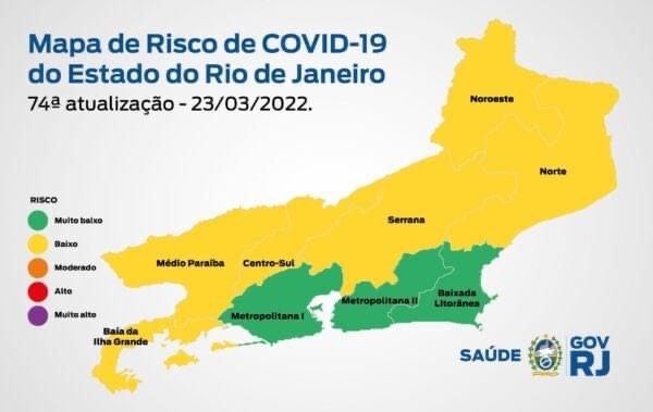O mapa desta semana mostra que as regiões Metropolitana I, Metropolitana II e Baixada Litorânea se encontram com bandeira verde (risco muito baixo). As regiões do Médio Paraíba, Serrana, Centro Sul, Baía de Ilha Grande, Noroeste e Norte permaneceram com bandeira amarela (risco baixo). Depois de dois meses consecutivos, o mapa não apresenta nenhuma região em bandeira laranja (risco moderado).