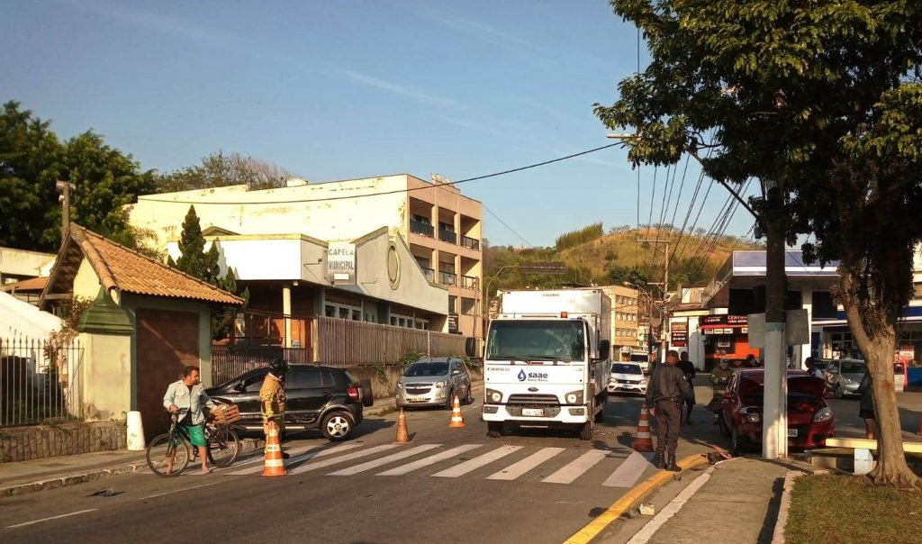 O acidente foi no início da avenida, próximo ao cemitério municipal. Com a batida, um dos carros se chocou com um poste, enquanto o outro por pouco não atingiu a parede da capela mortuária.