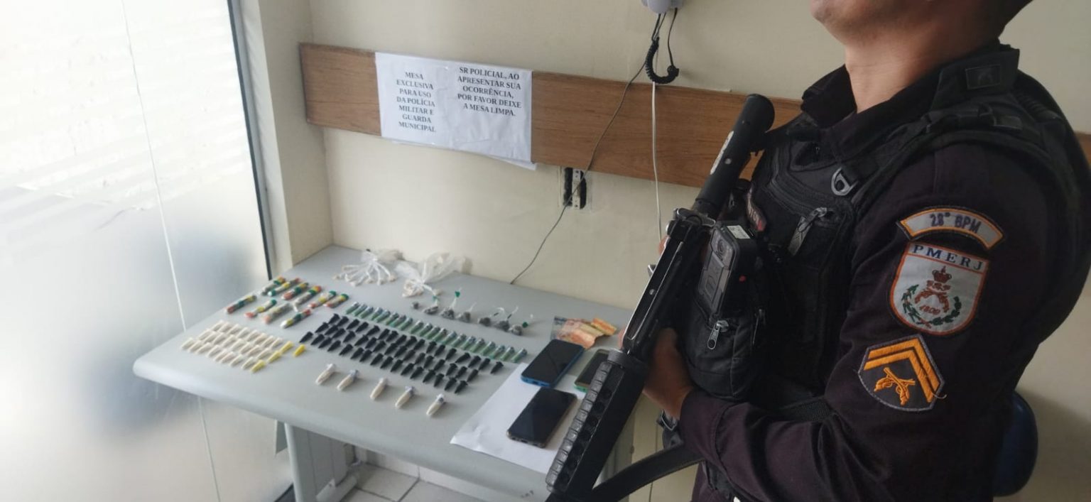 Chegando, os agentes tiveram a atenção voltada ao trio. Nisso, foi feita abordagem aos suspeitos. Na operação, foram apreendidos: 102 pinos de cocaína, 17 tiras de maconha e 14 pedras de crack, além de três celulares e R$ 34 em espécies.