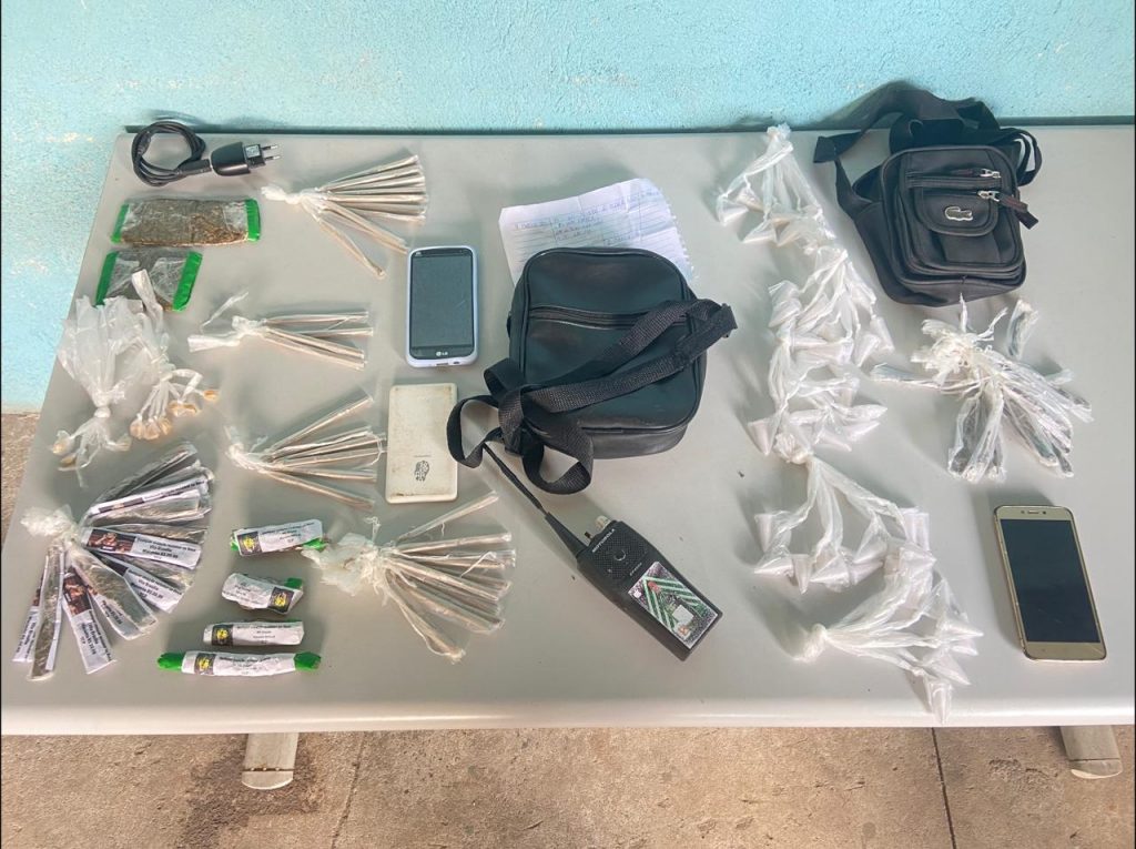 Com a dupla, foram encontrados 47 pinos de cocaína, 12 tiras de maconha, 30 cigarros, quatro pedaços e 14 tiras da mesma droga e 12 pedras de crack.