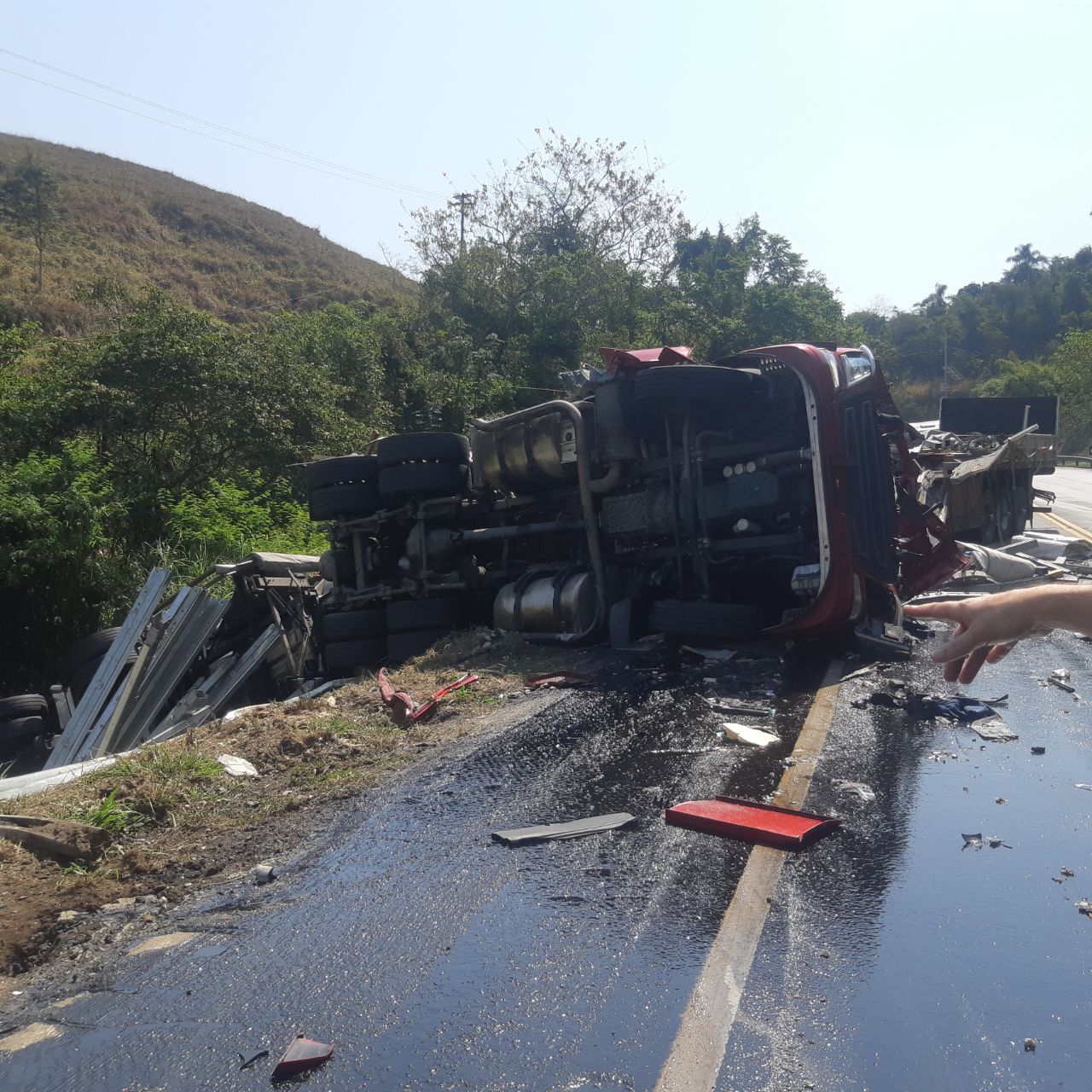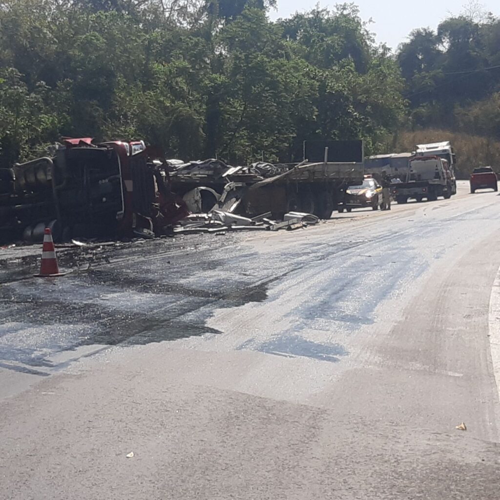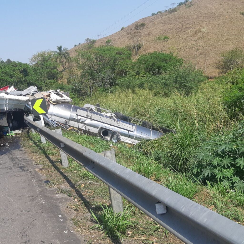A rodovia estava, no momento desta publicação, interditada nos dois sentidos, por conta da possibilidade de incêndio existente no trecho, já que houve vazamento de óleo diesel.