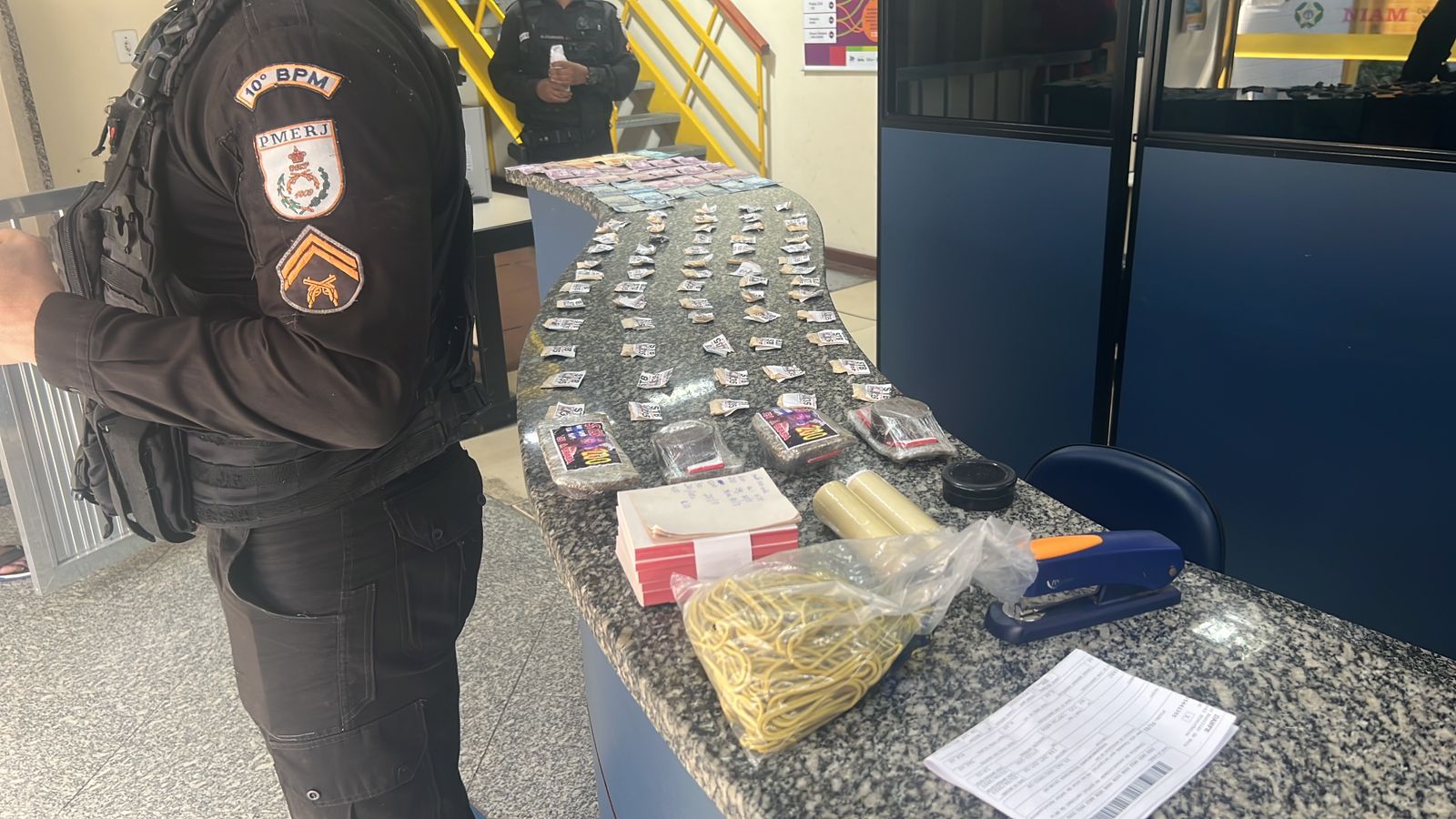 Chegando, o alvo da ordem judicial não foi localizado e casa do primo dele estava aberta, que tinha acabado de fugir do local. Dentro do imóvel, segundo a ocorrência policial, 54 pinos de cocaína e quatro embalagem de maconha. O material foi levado para a delegacia de Barra do Piraí (88º DP), onde o caso foi registrado.