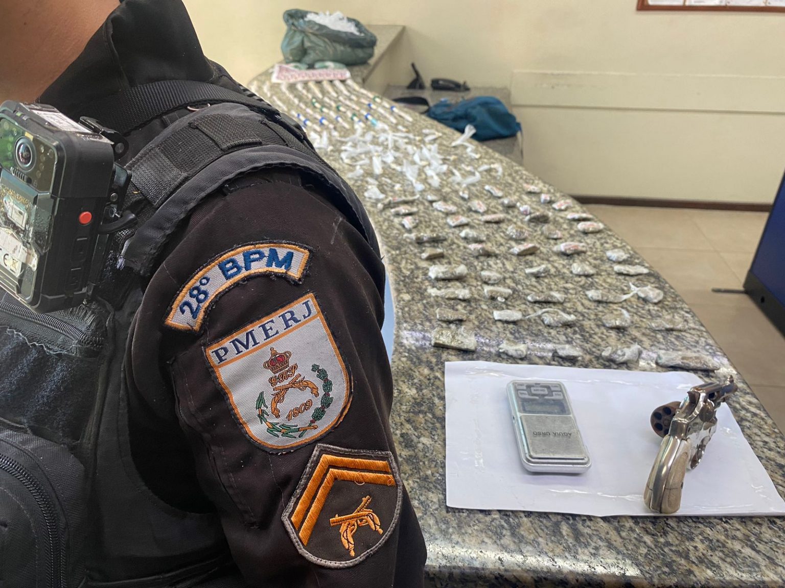 Uma ação da Polícia Militar apreendeu drogas e arma neste sábado (8) em Barra Mansa. A ocorrência foi na Rua Oscar Natalino de Souza, no bairro Santa Izabel. Os policiais militares foram até o endereço após uma denúncia de tráfico de drogas.