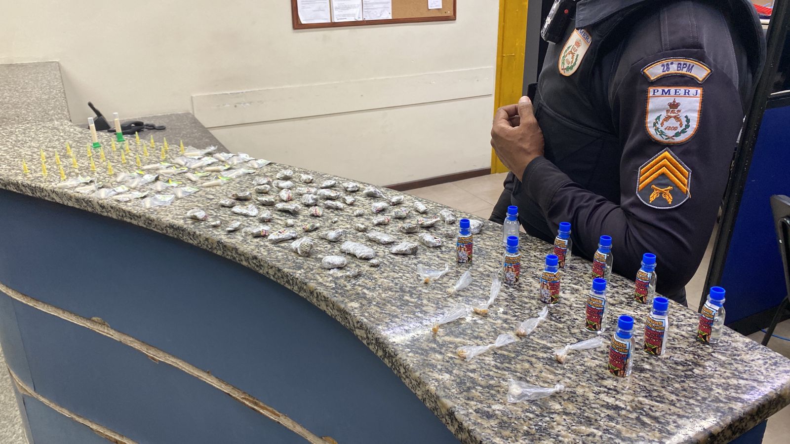 Ele abandonaram os seguintes materiais: 50 tabletes de erva seca (maconha), 11 frascos de loló, 8 pedras de crack e 44 pinos de cocaína. Todo o material apresentado à 90ª DP (Barra Mansa), onde foram tomadas as medidas cabíveis sobre a apreensão.