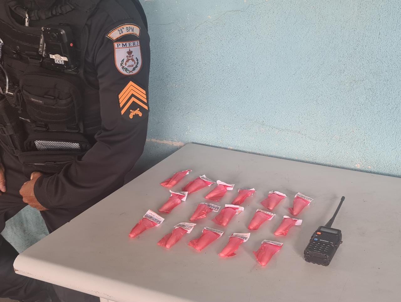 Ao entrarem, um grupo de suspeito fugiu por uma área de mata. Porém, eles deixaram pra trás uma sacola plástica e rádio de comunicação. Nela, havia 16 pinos grandes de cocaína. O material do tráfico foi apreendido e levado para a delegacia de Volta Redonda (93º DP), onde o caso foi registrado.