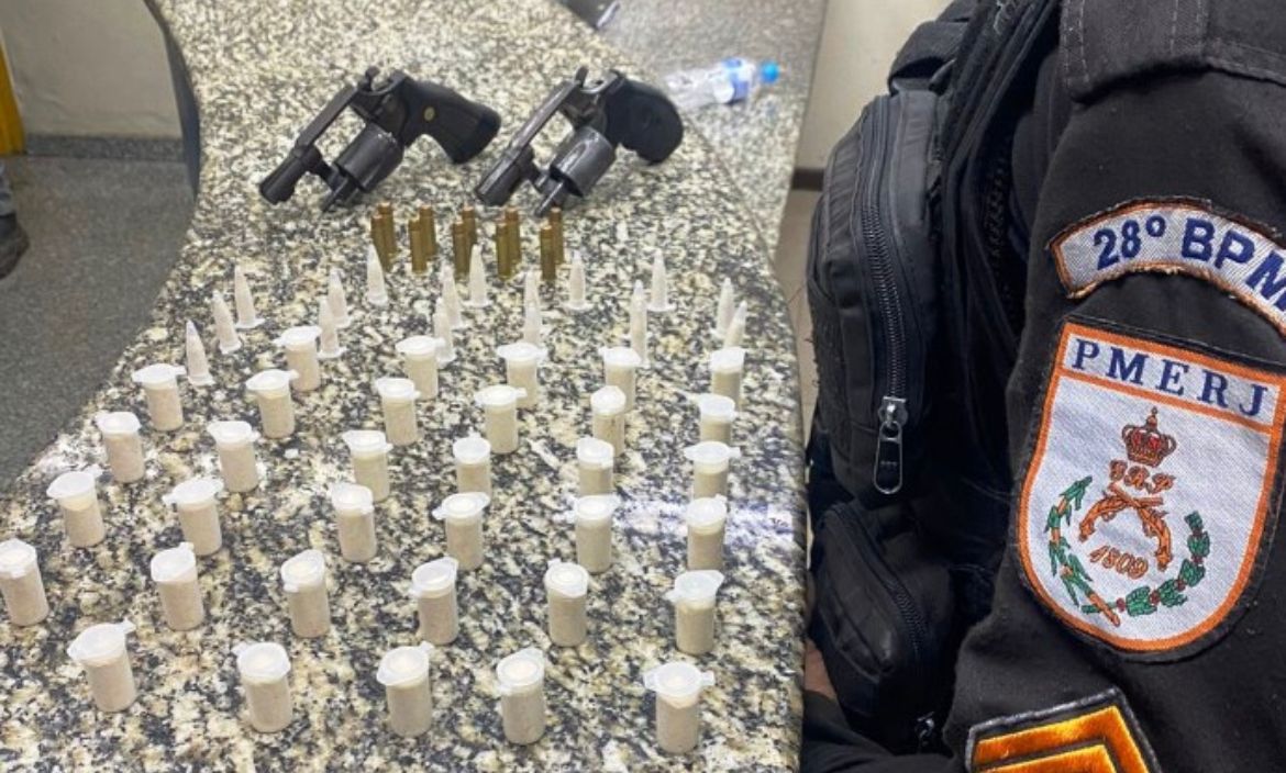 Chegando ao endereço, os agentes avistaram os dois homens em atitude suspeita e fizeram a abordagem. Com eles, os policiais arrecadaram dois revólveres calibre 38 (um com a numeração raspada) e 52 pinos de cocaína. Os dois e as drogas foram levados para a delegacia de Barra Mansa (90º DP), onde o caso foi registrado. Eles foram autuados por tráfico, permanecendo preso.