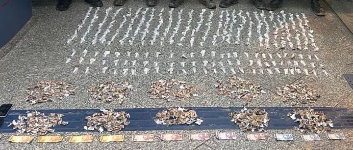 Com eles foram apreendidos 350 pinos de cocaína e 630 pedras de crack, além de R$ 171 em espécie. Os materiais e os suspeitos foram levados para a delegacia de Barra do Piraí