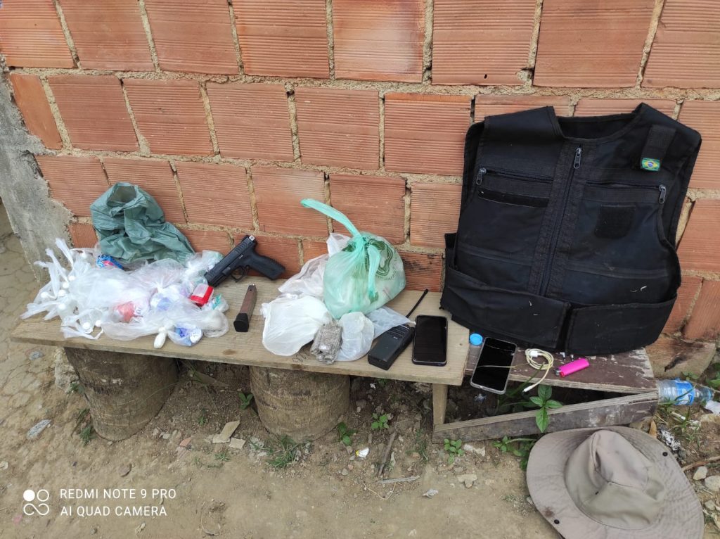 A arma estava em um imóvel na Rua Barão de Mauá, no bairro Jardim Belmonte, onde também foram encontrados dois suspeitos, que foram conduzidos para a delegacia.