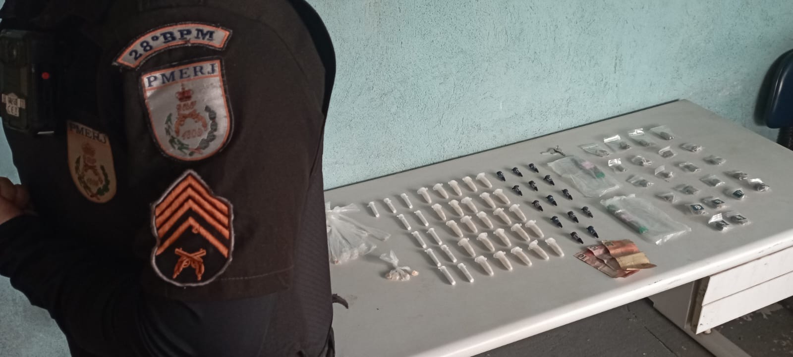 Os agentes fizeram a abordagem e confirmaram o teor da informação. Com eles, foram apreendidos 50 pinos de cocaína, 24 pedaços de maconha e 14 pedras de crack, além de R$ 113 em espécies.