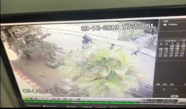O roubo foi flagrado por uma câmera de segurança. As imagens mostram que a vítima parece ter percebido de que seria assaltada e, então, tenta arrancar rapidamente, chegando a levantar a roda dianteira do veículo, mas um dos assaltantes derruba a moto.