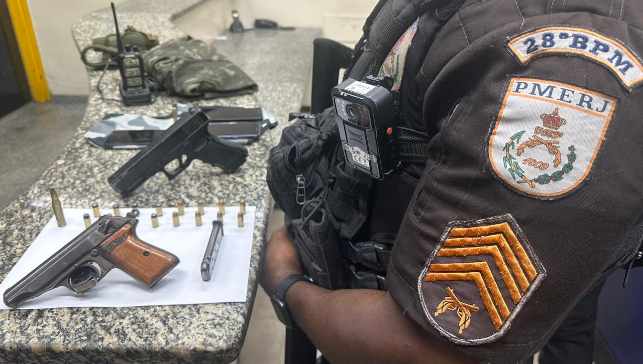 Chegando, os agentes se depararam com os dois elementos suspeitos. Em revista pessoal, os militares encontraram duas pistolas – um com a numeração raspada – com 17 munições, dois carregadores, uma gandola, dois cintos de guarnição, três celulares e uma cápsula de fuzil.