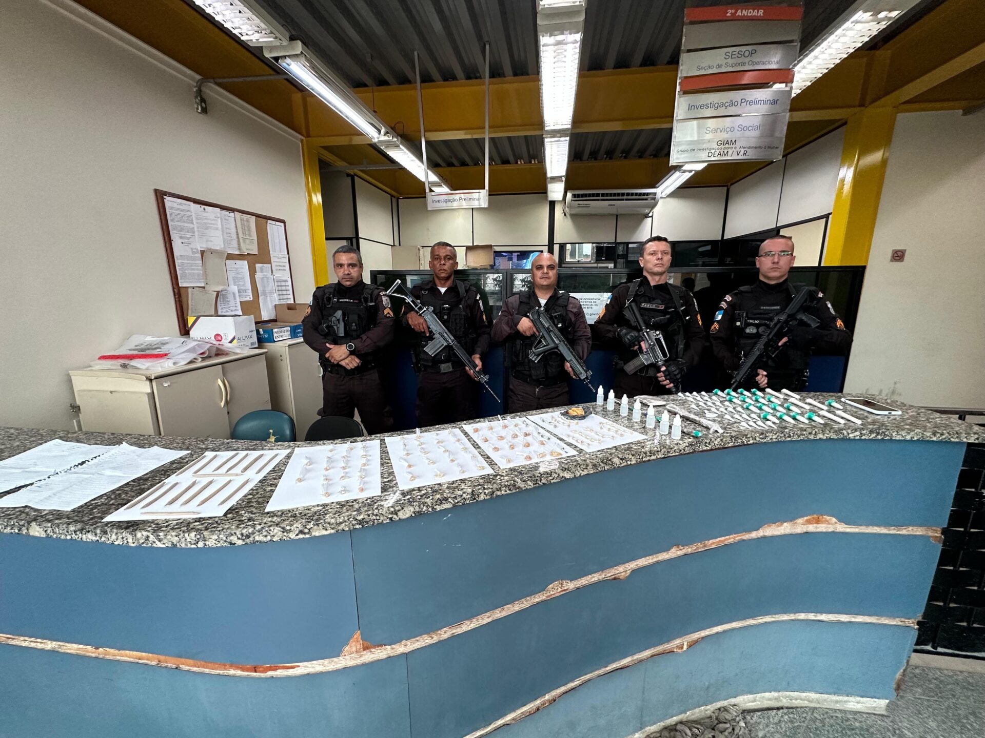 Chegando, os agentes confirmaram a informação e fizeram a abordagem aos suspeitos. Com eles, foram apreendidos os seguintes materiais: