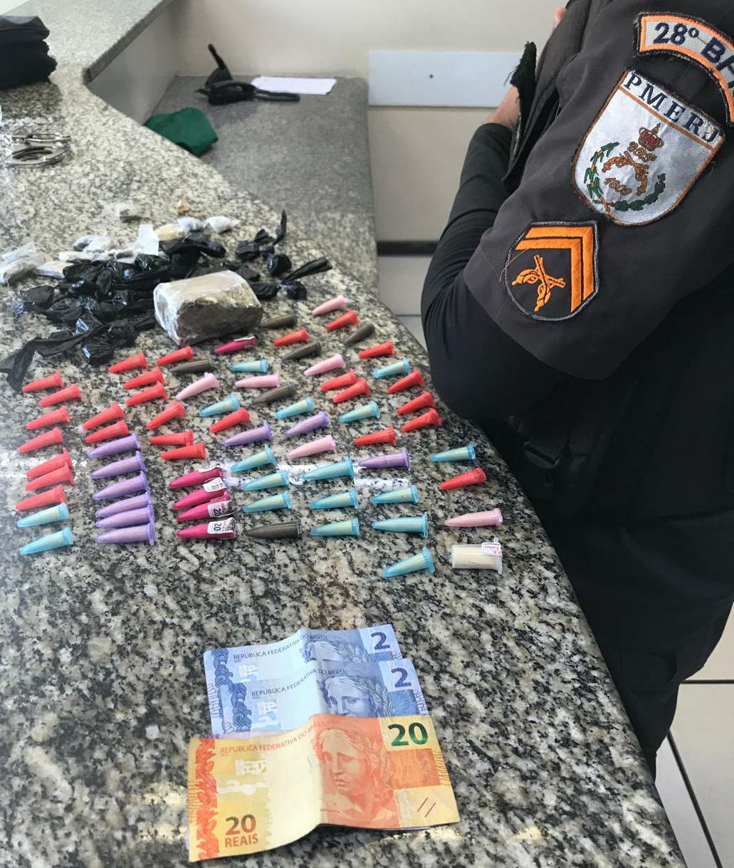 Quando os militares se aproximaram para abordá-los, os dois tentaram fugir, mas acabaram sendo pegos. Com eles, foram encontrados cinco cápsulas de cocaína, duas trouxinhas de maconha, um celular e uma pequena quantia em dinheiro.