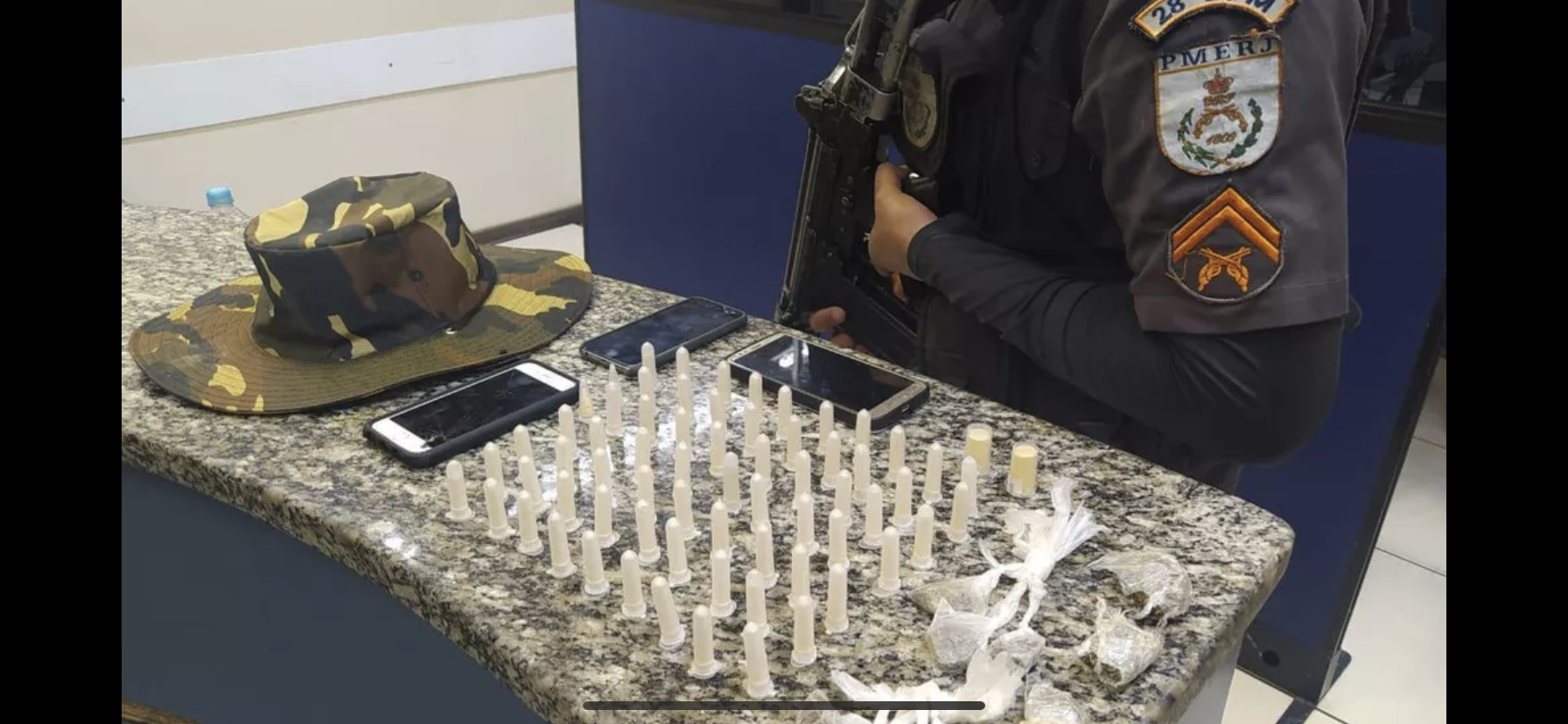 Ao todo, foram apreendidas 63 cápsulas e cocaína, 10 trouxinhas de maconha e três celulares.