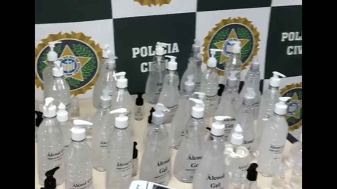 Dois homens, de 31 e 52 anos, foram presos  comercializado álcool em gel de falaificados. O flagrante da Polícia Civil aconteceu na Vila Santa Cecília, em Volta Redonda. Eles vendiam o pote grande por R$ 30 e menor por R$ 10.