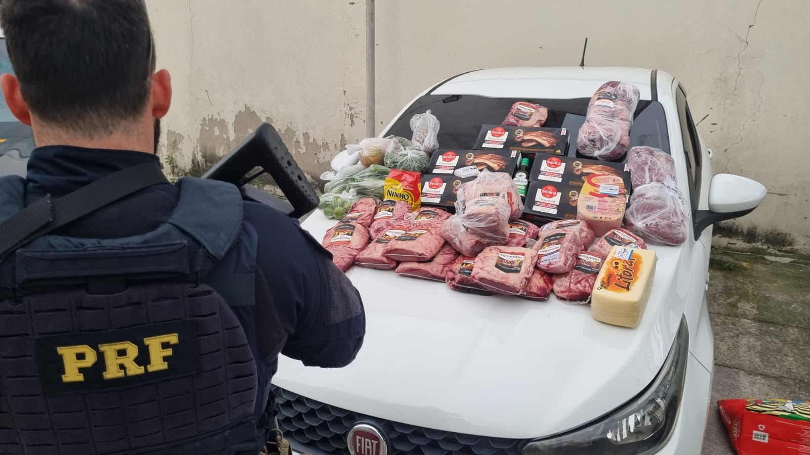 Dois homens, de 32 e 26 anos, foram presos após ser flagrados com mais de 50 quilos de carnes roubadas de um supermercado em Volta Redonda. Eles foram abordados no 171 km, na Baixada Fluminense, num Fiat Argo. As informações foram passadas pela Polícia Rodoviária Federal.
