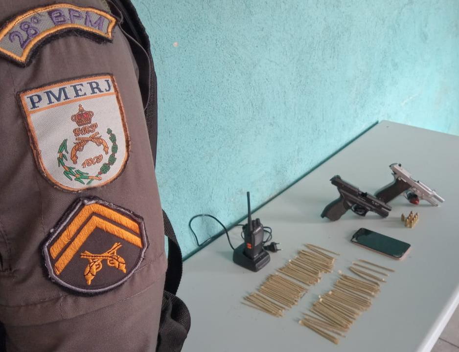 No final da ocorrência, além da arma, foram apreendidos munições e 85 cigarros de maconha de R$ 5. A dupla e o material foram levados para a delegacia de Volta Redonda (93º DP), onde o caso foi registrado.