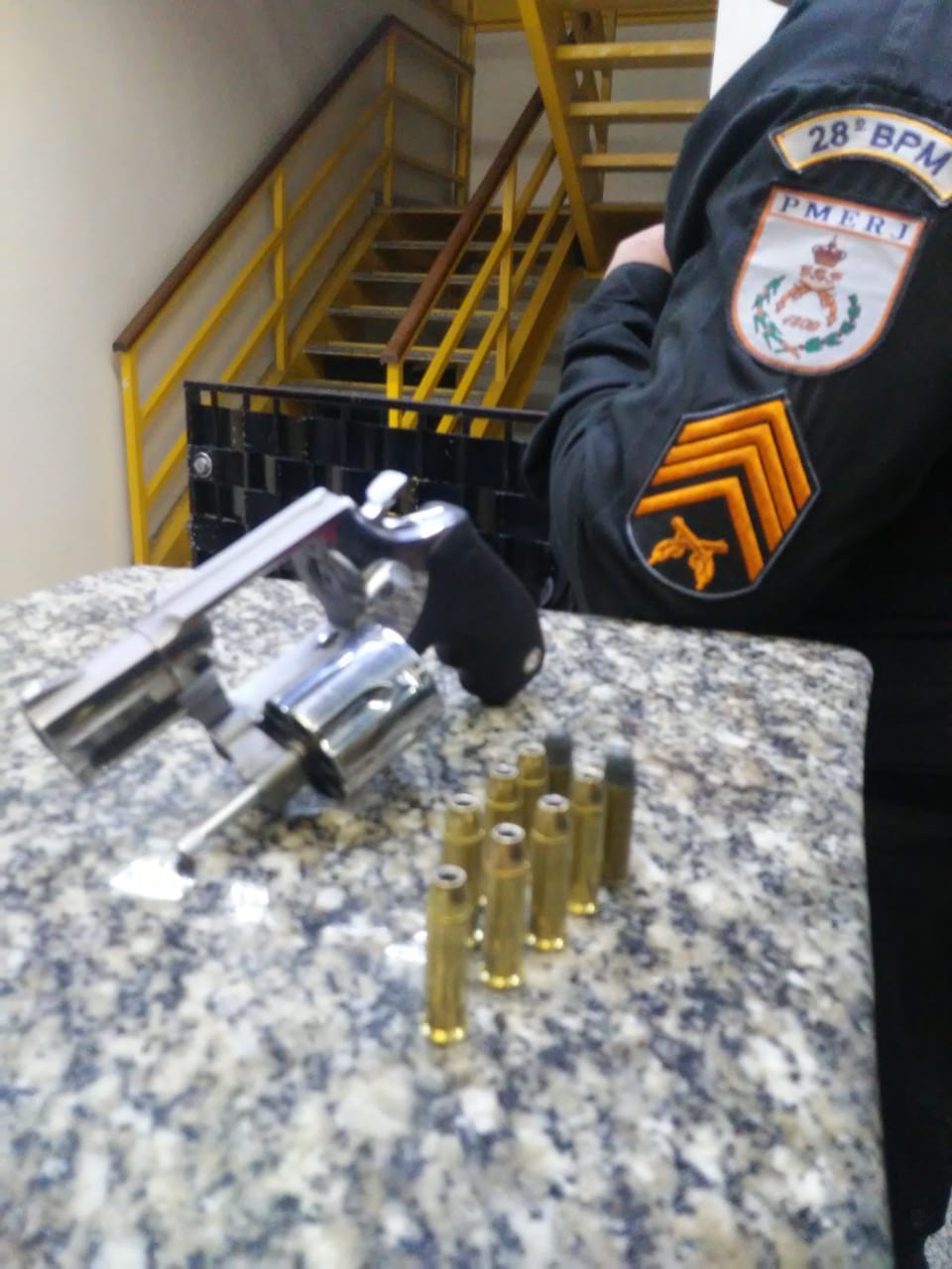 Segundo os policiais, o suspeito saiu do carro muito alterado. Ele precisou ser contido e durante revista ao veículo foi encontrado um revólver calibre 38.