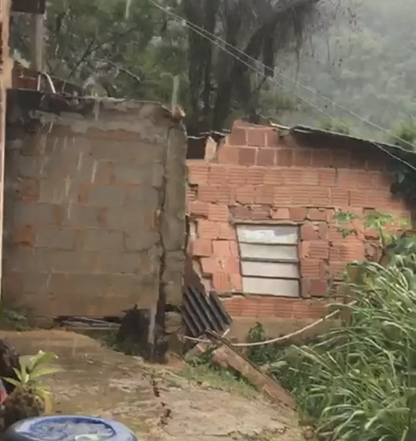 Segundo a Defesa Civil, a estrutura do imóvel foi afetada depois que uma encosta cedeu. A casa estava vazia e nenhum morador se feriu. (veja vídeo)