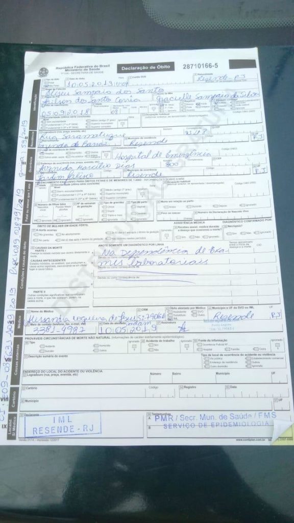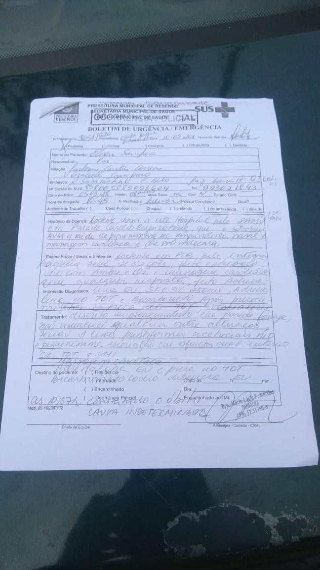 Além disso, a família também questiona que a criança não morreu no Hospital de Emergência, conforme foi relatado no Boletim de Urgência da unidade médica. O documento foi assinada pela médica pediatra Marta Lúcia Martins.