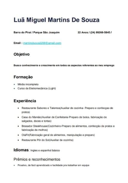 Quem puder ajudá-lo, pode entrar em contato pelo telefone: (24) 99266.5845. Confira o currículo abaixo.