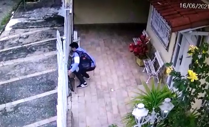 Antes de entrar, o homem foi filmado pela câmera batendo palmas por vários minutos. Como ninguém apareceu, ele se convenceu de que não havia ninguém e arrombou o portão.