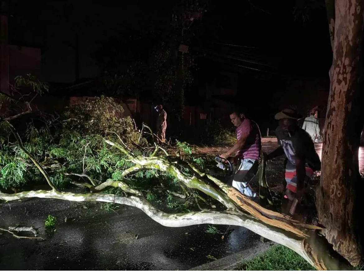 De acordo com a Defesa Civil, pelo menos 100 ocorrências de destelhamentos e quedas de galhos e árvores foram registradas em quase todos os bairros da cidade.